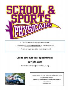- Public Defender Mobile Medical Unit: Please note clinic services will be limited for the week of FEB 1st: